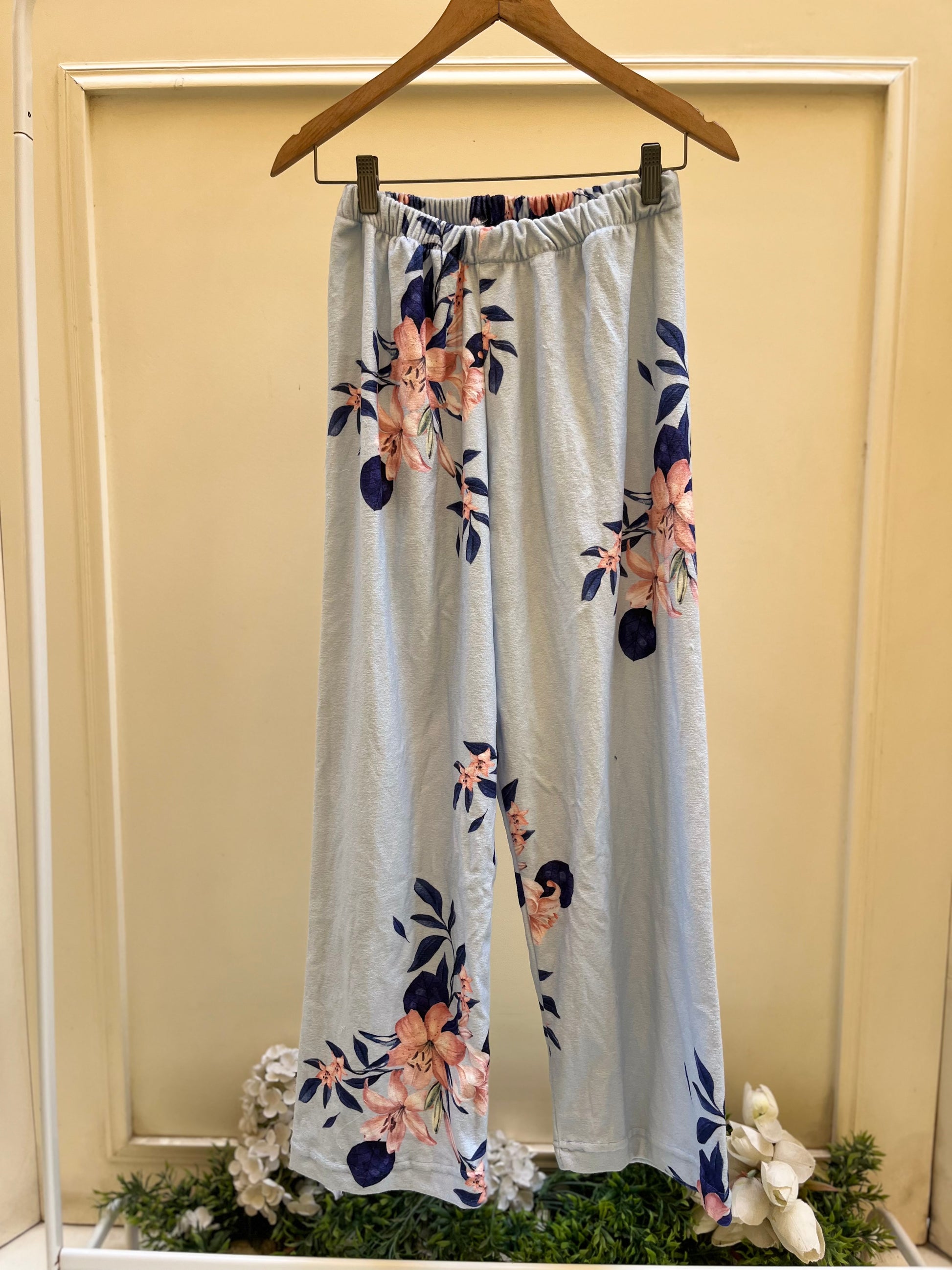 Baby Blue Flower Velvet Pants