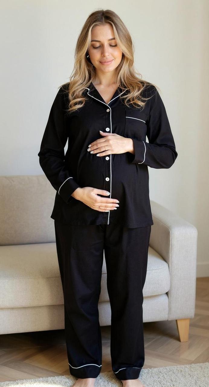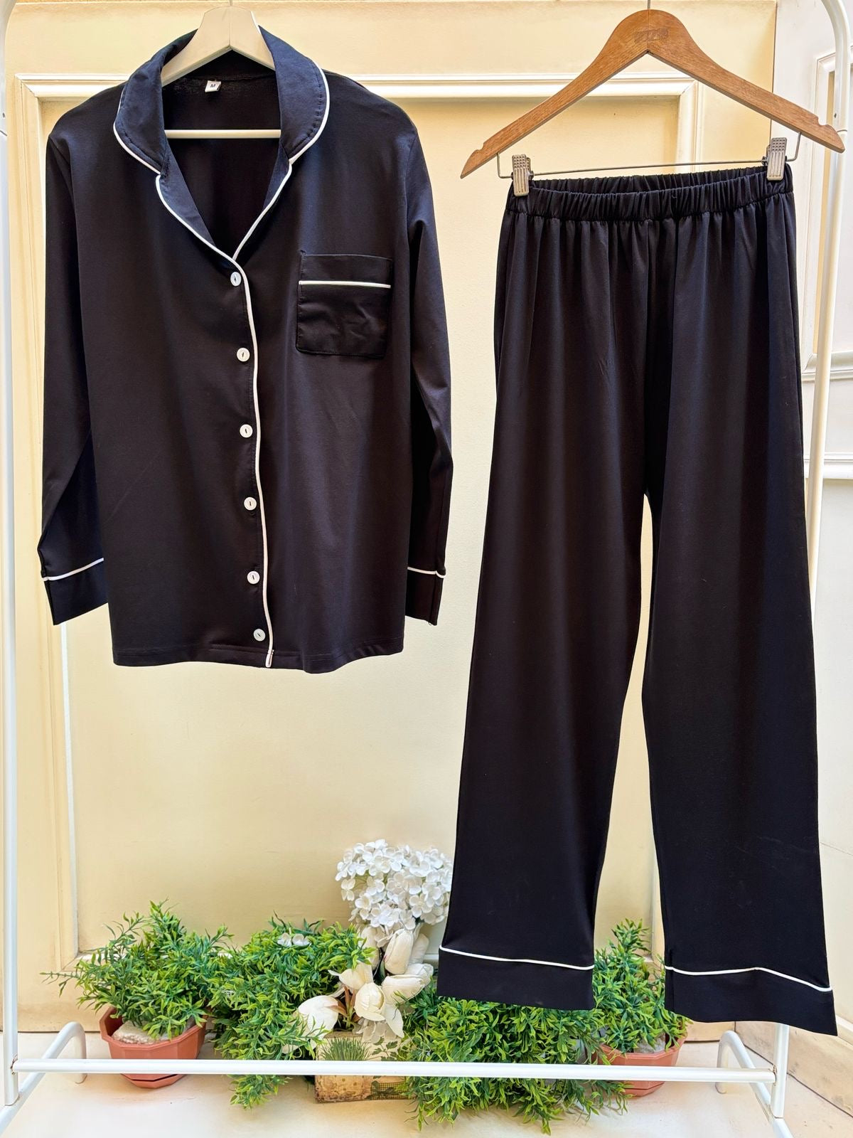 100% Cotton Full Sleeves Black Buttoned Set