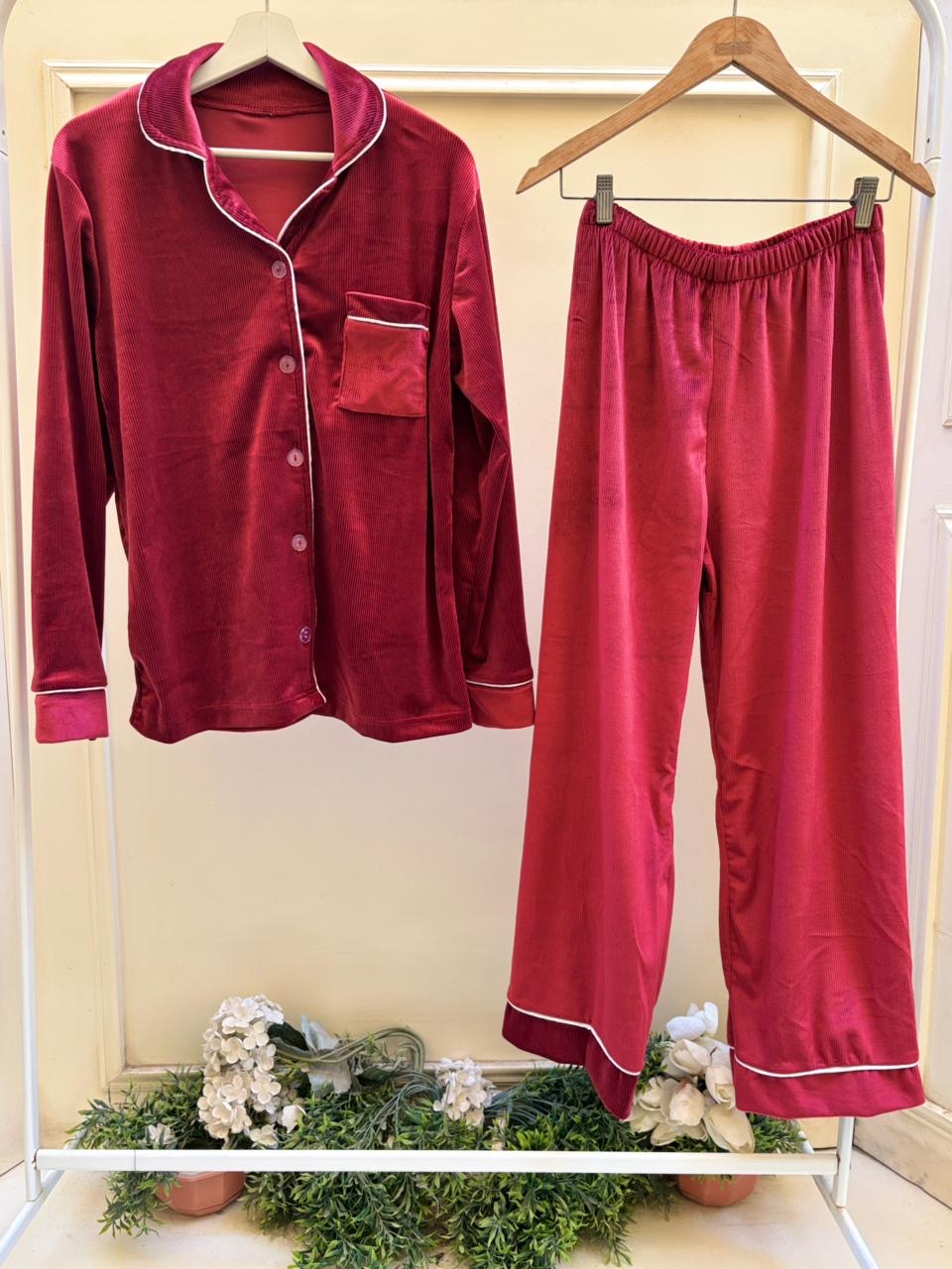 Doubled Face Velvet Full Sleeves Buttoned Set